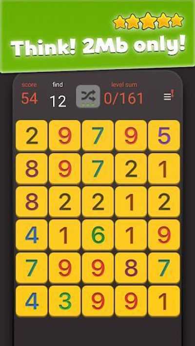- Если ходов больше не осталось и сумма всех собранных сумм больше суммы чисел, оставшихся на поле, то вы прошли этот уровень и можете переходить к следующему.