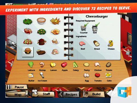 * Нанимайте персонал, выбирайте меню и украсьте свое кафе, чтобы произвести впечатление на своих клиентов