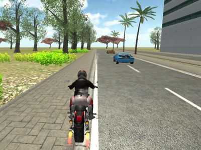 Запускайте турбодвигатели своего тяжелого мотоцикла, ускоряйтесь и мчитесь. вокруг вас быстро мчатся озорные спортивные автомобили.