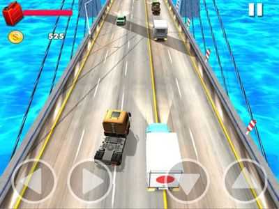 Управляйте своим еврогрузовиком по шоссе с сумасшедшим трафиком, собирайте топливо и участвуйте в гонках с сумасшедшими водителями
