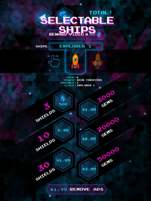 • Покупайте щиты за космические самоцветы или наборы щитов за реальные деньги