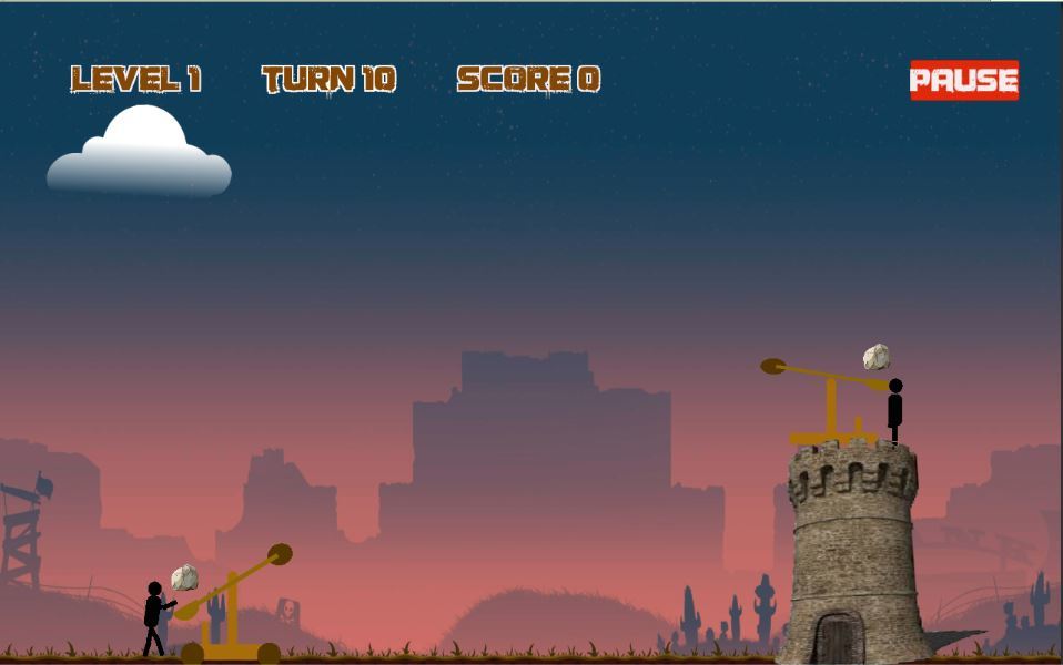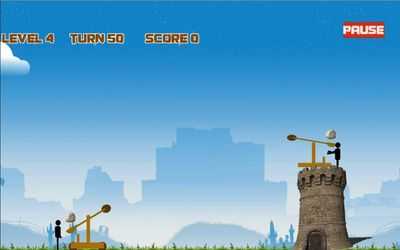 Битва катапульт между двумя воинами. Вы должны набрать больше очков, прежде чем закончите попытки и прежде чем враг уничтожит вас.