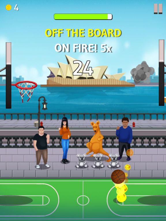 Вы нажимаете на экран, чтобы мяч подпрыгивал. Мяч будет следовать за обручем и проходить по горизонтали через края экрана. Ваша главная цель – забить как можно больше мячей. В зависимости от того, как вы забиваете корзину, детектор очков обнаружит и наградит вас трюковым броском. Выполняйте два трюковых удара подряд, чтобы получать все больше и больше бонусных очков.