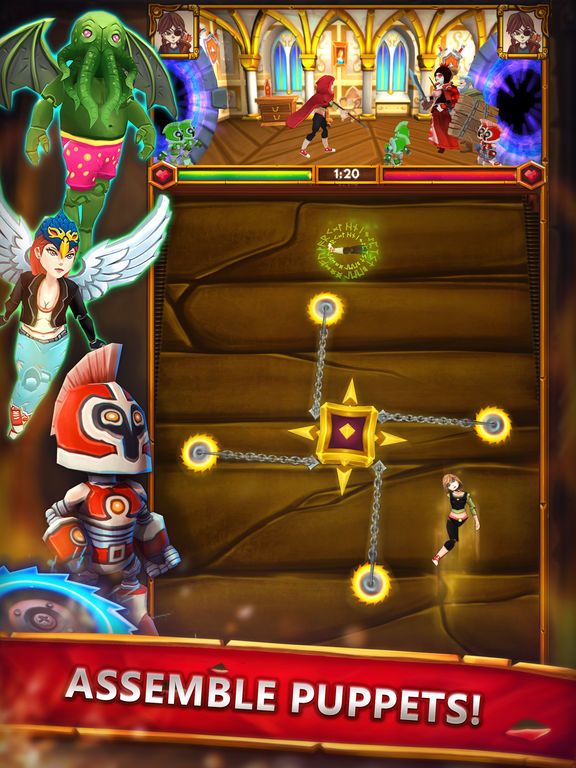 Соберите своих марионеток и отправьте их сражаться против команды противника. Улучшайте свою команду, собирайте добычу и поднимайтесь вверх в списках лидеров, чтобы обогнать других игроков.