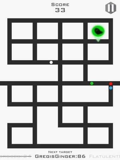 Избегайте преследующих точек как можно дольше, собирайте бонусы, которые помогут вам на пути, и будьте осторожны, чтобы не попасться в ловушку. путь к закрытию.