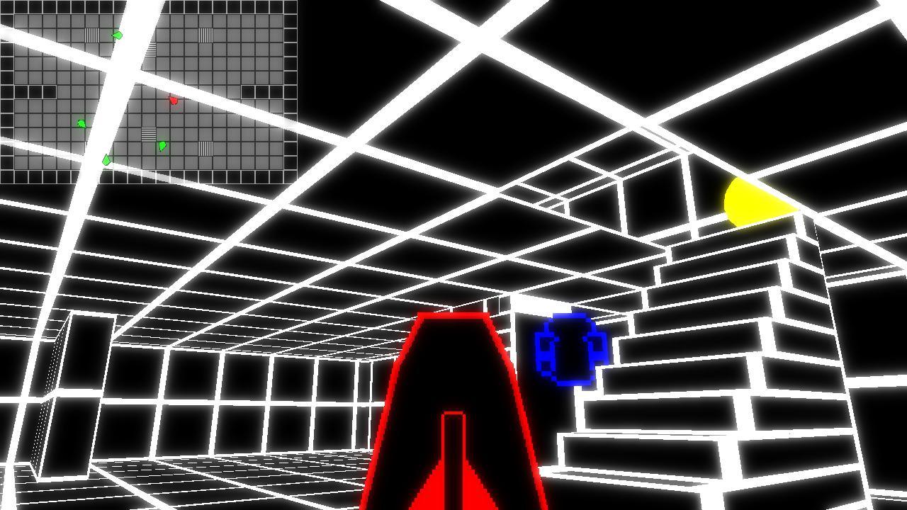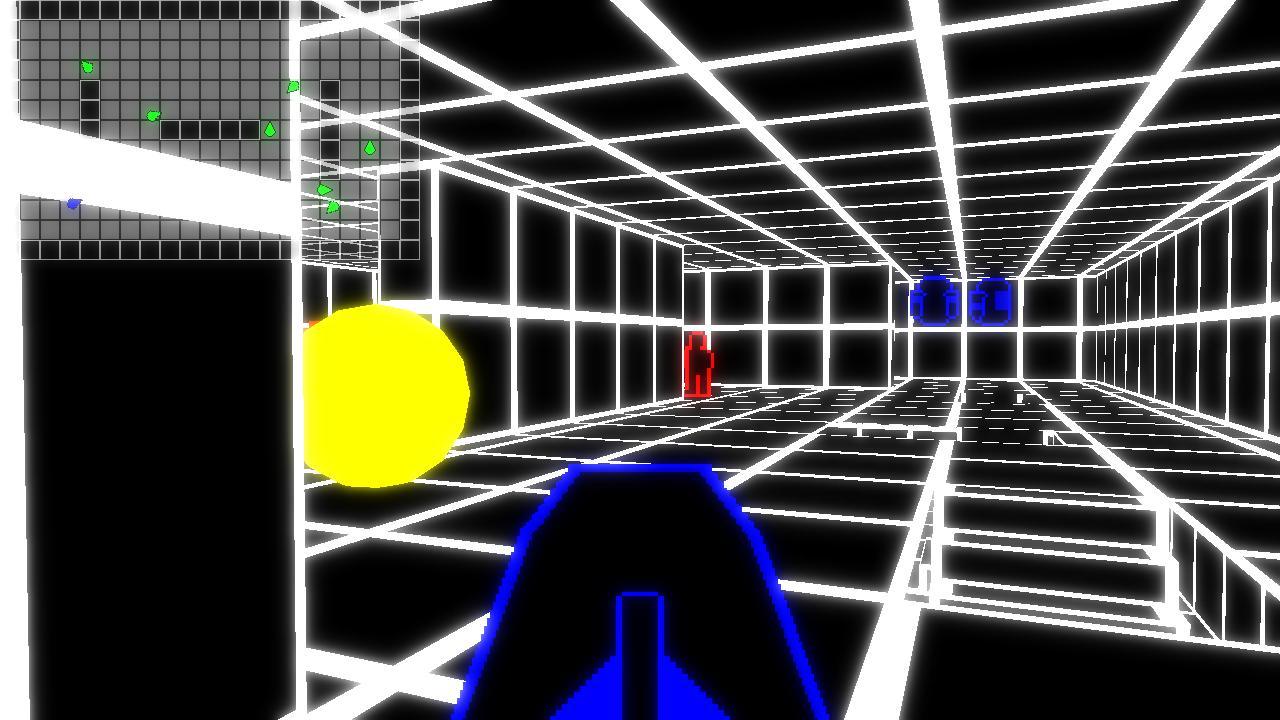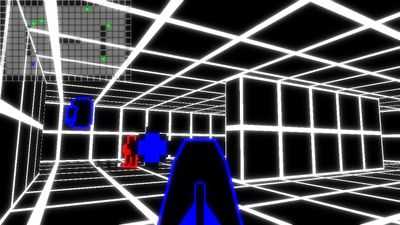 Основная цель демо-версии — собирать желтые шары, а также защищаться от других людей и летающих роботов.