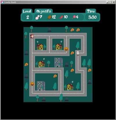 Вы представляете Candy Rush в сотрудничестве с Nono02P для франкоязычного GameJam на тему "Des bonbons ou un sort".. эм>