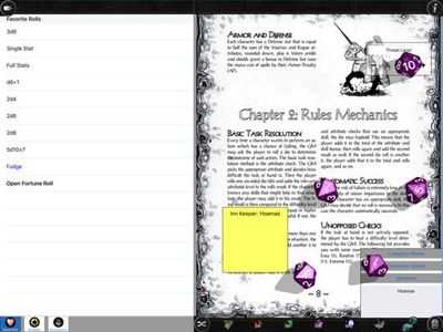 - Множество необычных типов кубиков (включая поддержку игр Fudge/Fate Core)