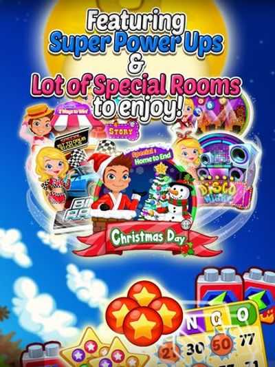 Мы предлагаем вам лучшую игру БИНГО для мобильных устройств, в которой есть не только обычные комнаты, но и множество специальных комнат с уникальными выигрышными схемами и спецэффектами!
