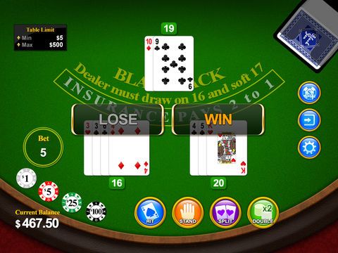 Играйте в блэкджек, как никогда раньше, на руке, как в реальном казино! Реалистичная и интуитивно понятная графика, разработанная в лучшем случае для мобильных устройств! Цель игры состоит в том, чтобы набрать большее количество очков, чем у дилера, но не более 21. Вы подсчитываете свой счет, складывая значения ваших отдельных карт. Карты со 2 по 10 имеют свою номинальную стоимость, J, Q и K приносят по 10 очков каждая, а туз приносит либо 1, либо 11 очков (по выбору игрока).