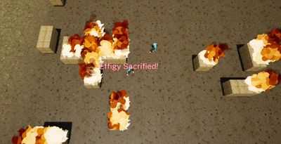 Осторожно, некоторые опрометчивые люди пытаются поджечь ваше чучело до того, как оно будет готово! Какому бы божеству вы ни приносили жертву, вы можете поспорить, что они принимают только полные жертвы. Не забудьте потушить любой нежелательный пожар с помощью ведра с водой!
