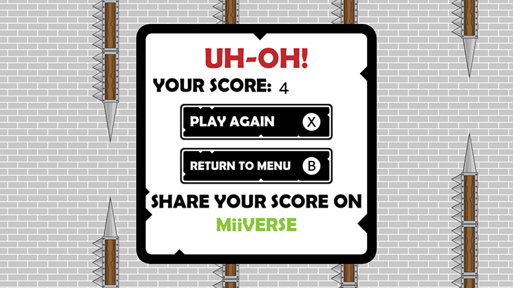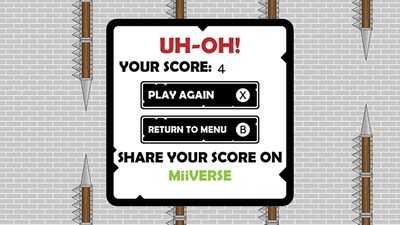 SPIKEY WALLS — захватывающая аркадная игра, доступная исключительно для Wii. U. В этом заголовке вы должны избегать ударов по «остроконечным» стенам, нажимая кнопку A на Wii U GamePad, чтобы заработать высокий балл. Поделитесь своим высоким оценка, разместив скриншот страницы результатов на Miiverse! Бесконечный веселье!