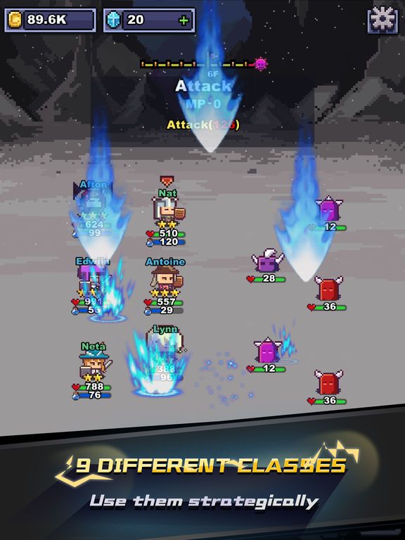 Стратегически используйте 6 героев разных классов для прохождения сложных уровней.