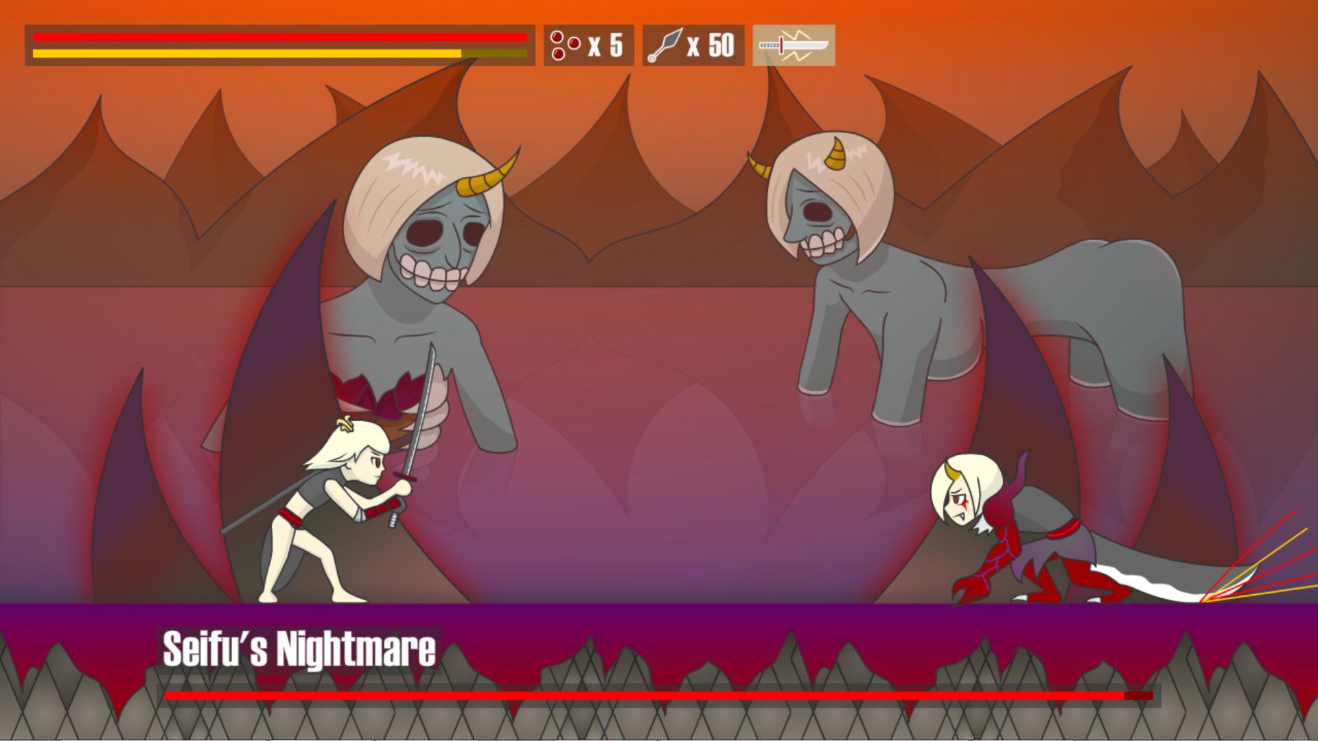 Таинственная девушка-демон-лиса похищает мужчин в далекой маленькой деревне. Охотник на демонов Сейфу был нанят, чтобы разрешить этот кризис. Теперь вооружитесь катаной и звездами ниндзя, спасите людей в деревне Сакура!