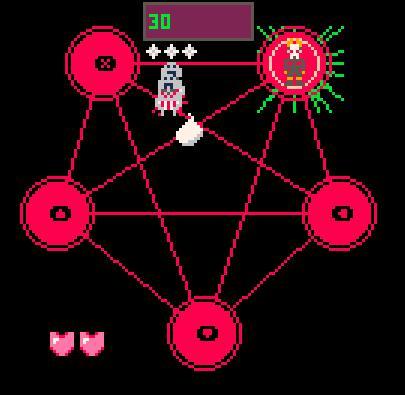 Клавиши со стрелками и X для движения. Перемещайтесь по линиям пентаграммы и собирайте души. Как только Сосуд душ заполнится, вы сможете атаковать демонов, бросившись через них.