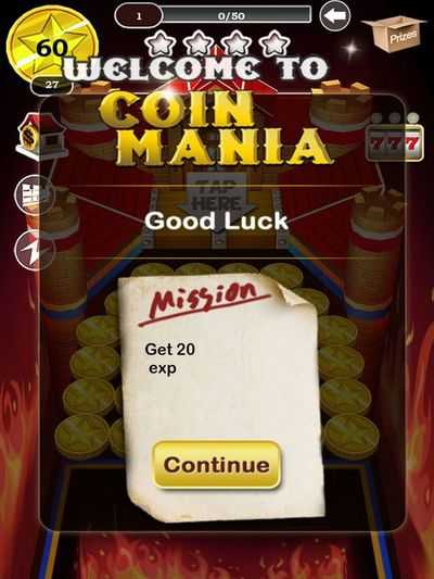 Постарайтесь оттолкнуть как можно больше блестящих монет и захватывающих призов, обязательно толкайте их к себе, потому что, если они упадут слева или справа они исчезли и не считаются.