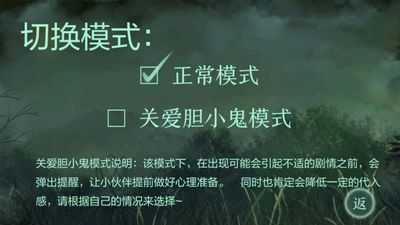 Советы: сюжет содержит некоторые картинки ужасов, вы можете выбрать [Режим заботы о робких] в [Титульная страница]-[Режим переключения]