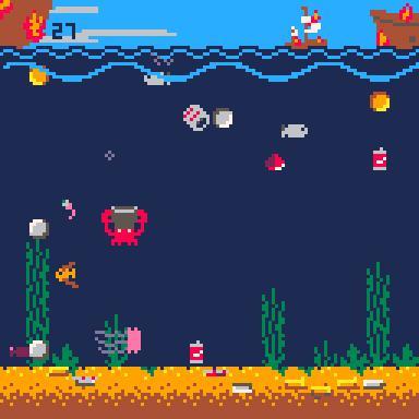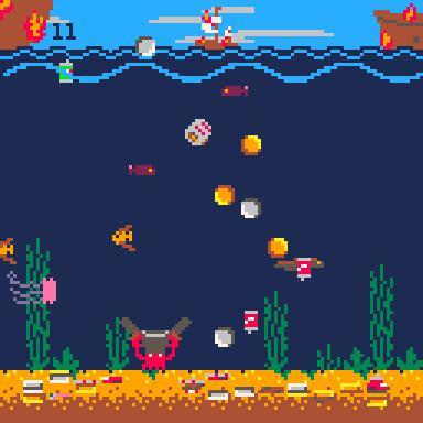 сделано во время 24-часового игрового джема Pico-8 на тему «под водой»