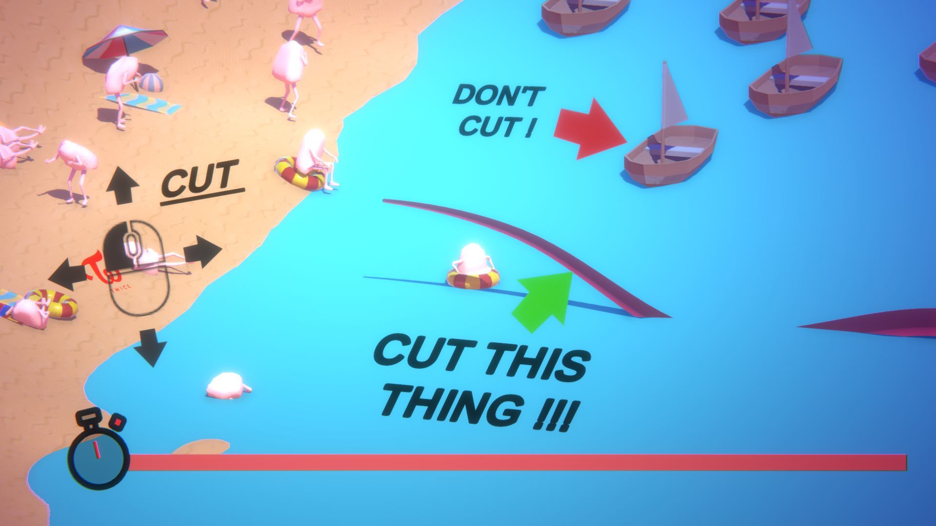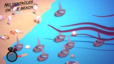 Большой осьминог пытается поймать людей на пляже своими огромными щупальцами. Остановите его во время штурма, отсекая все приближающиеся щупальца!
