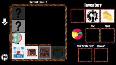 Игрок подбирает предметы с пола, перетаскивая карты в слоты инвентаря, или использует их, перетаскивая в слоты «Использовать» или «Снарядить».