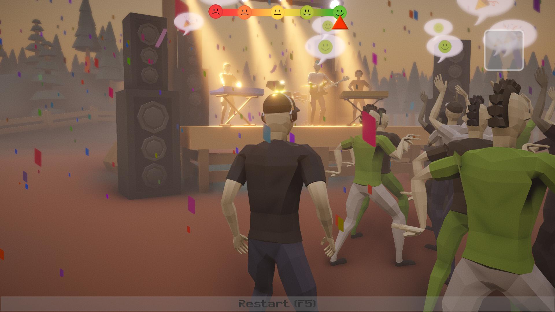 Вы играете за роуди, который ищет недостающие инструменты, чтобы начать фестиваль. Где-то на карте спрятаны четыре инструмента. Найдите инструменты и верните их на сцену, пока толпа не потеряла хорошее настроение.
