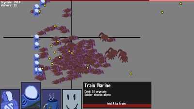 Вы защищаете свою базу от волн зергов, какой-то враждебной инопланетной жизни. Вместо того, чтобы строить башни, вы тренируете космодесантников и «управляете» экономикой. Это своего рода праздная игра :P