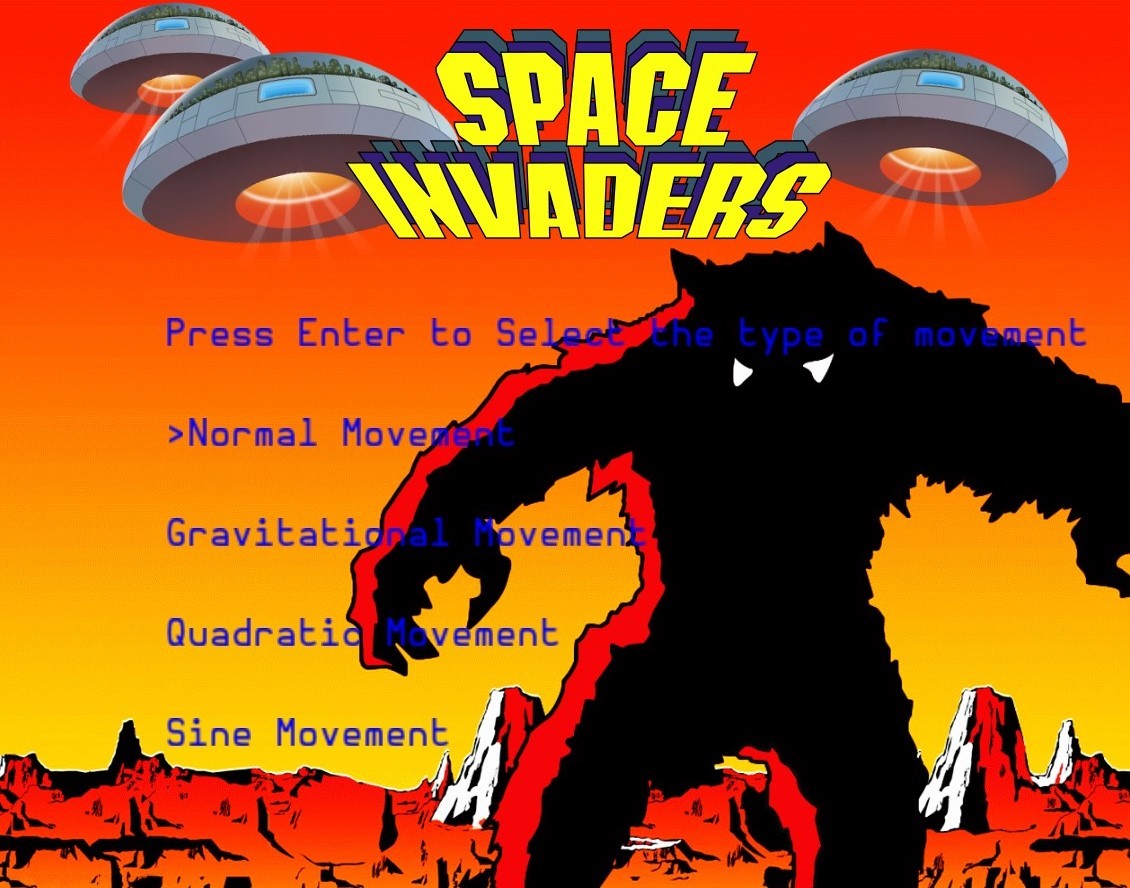 Игра Space Invaders, созданная на C++ с использованием ASGE Framework. Дополнительная функциональность добавлена с движением инопланетян. Инопланетяне передвигаются 4 разными способами, доступ к ним можно получить в главном меню.