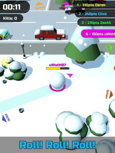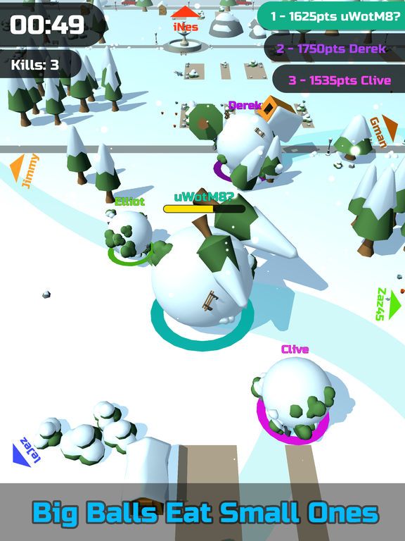 Скатайте самый большой снежок! Чтобы победить, проглатывайте все на своем пути, включая, конечно же, другие снежки.