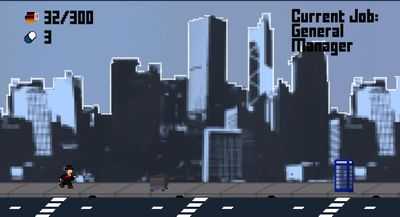 Стратегический раннер. Всего у игрока есть 10 таблеток, и ему нужно предсказать, сколько он будет использовать для каждого этапа. Во время бега игрок может бесплатно прыгать и делать двойной прыжок, а также кричать и прыгать более трех раз за счет стресса. таблетки от стресса, чтобы избежать остановки сердца. Его зовут Билл.