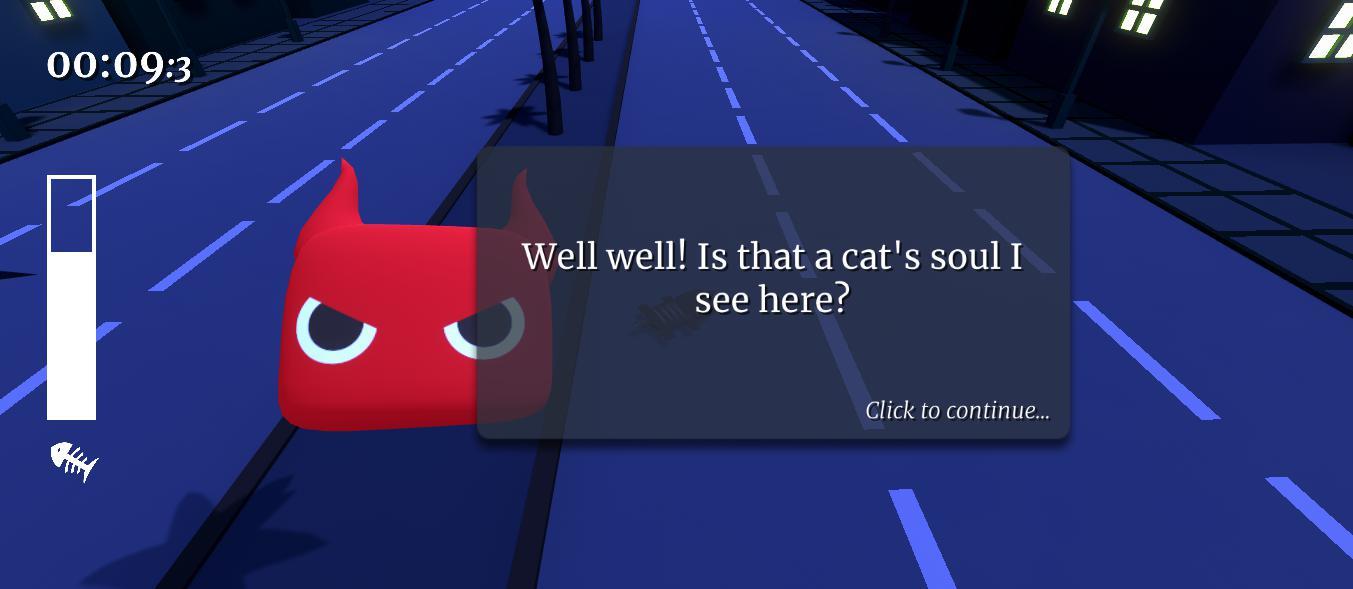 Вы играете за Фауста, бездомного кота с 9 жизнями. Вам нужно перейти дорогу, чтобы добраться до еды, и каждый раз, когда вы умираете, дьявол предлагает купить ваши души в обмен на бонусы.