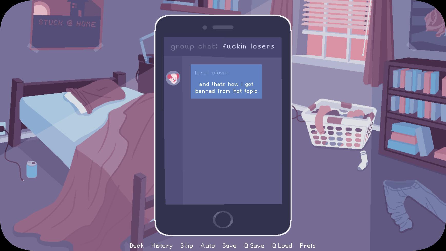 Мечты днем – это короткая забавная визуальная новелла о глупых шутках в групповом чате, дружбе и мечтах.