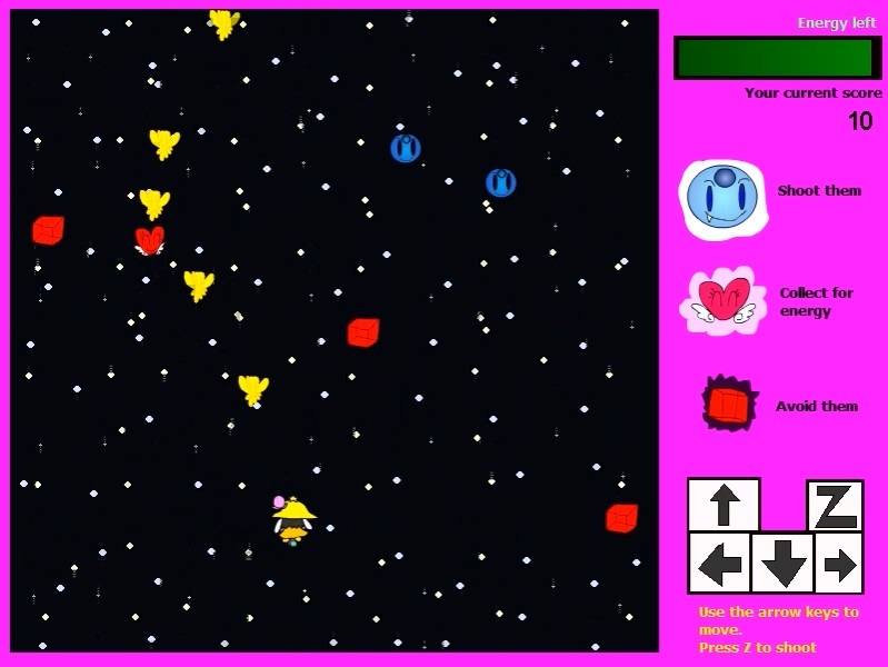 Простое управление Используйте клавиши со стрелками для перемещения Используйте клавишу Z, чтобы стрелять