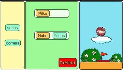 Прототип для изучения эсперанто. Перетащите слова в пустое пространство, чтобы сформировать предложение. Получите мяч, чтобы достичь цели. На данный момент у него 5 уровней. Он был построен по незавершенному проекту, над которым мы ранее работали.