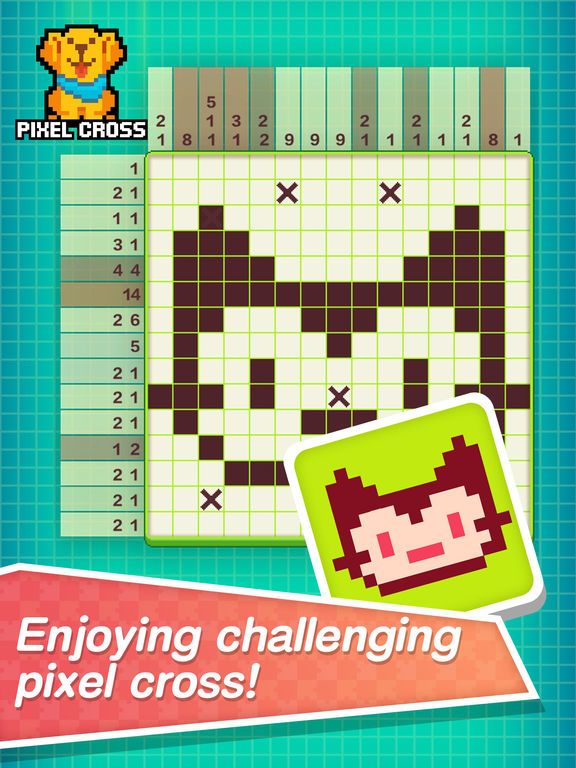 Pixel Cross включает в себя головоломки для всех возрастов! Расслабьтесь и получайте удовольствие от веселых логических головоломок для детей и взрослых с простым, средним, сложным и очень сложным режимами головоломки. Вы сможете проверить свои навыки логического мышления, используя двухмерную логику для расшифровки чисел и открытия красивых шедевров пиксельной графики.