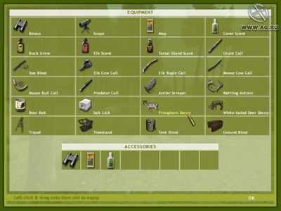 - 25 различных винтовок, дробовиков и луков; Доступен 21 уникальный аксессуар и предмет