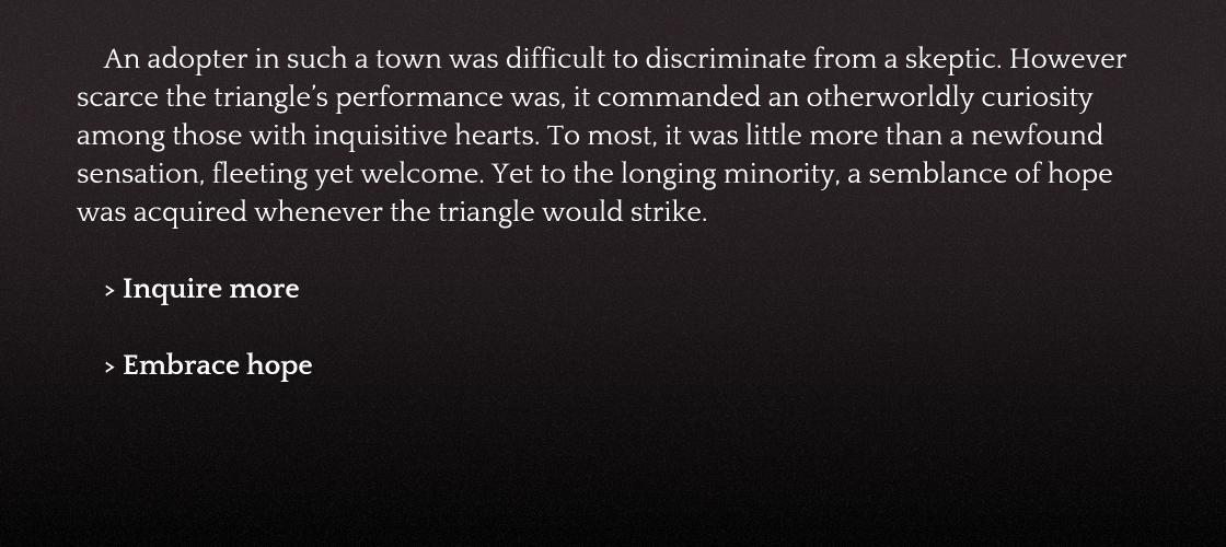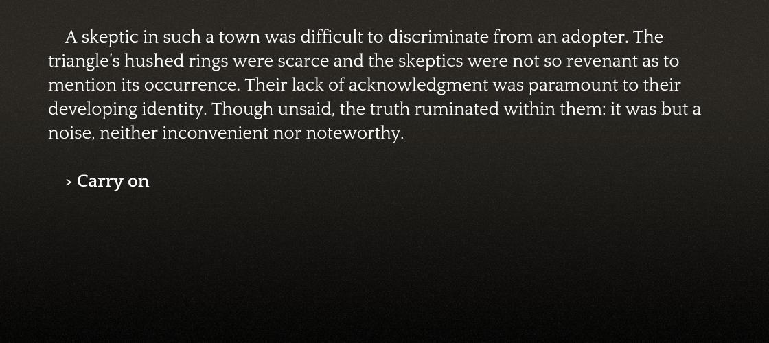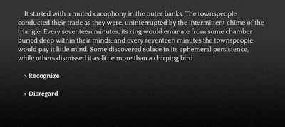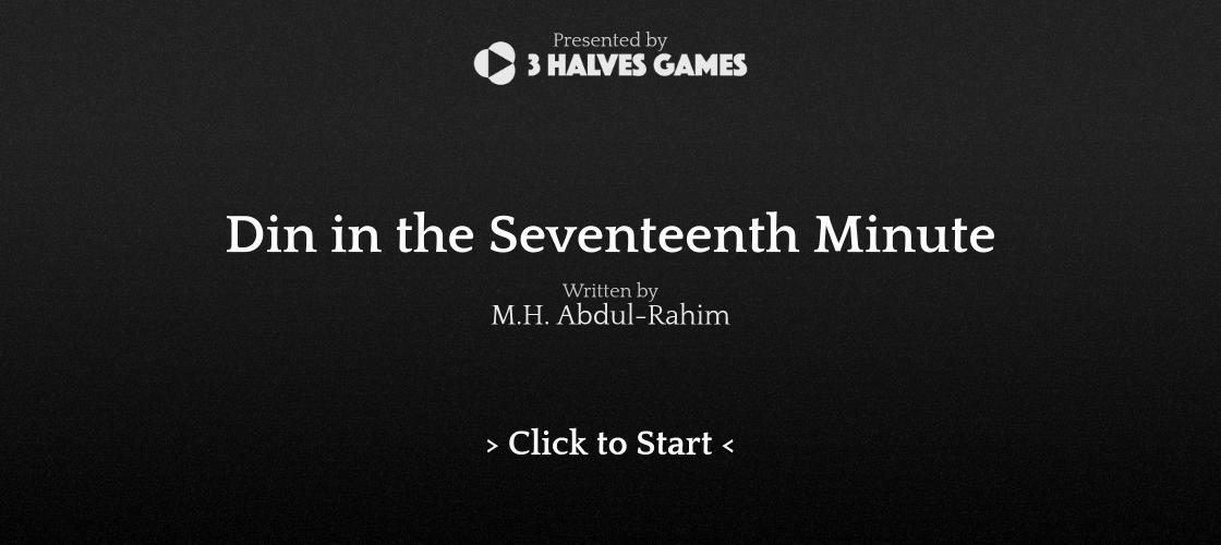 Дин на семнадцатой минуте — моя работа для интерактивного художественного джема Nouvim 3000. Требования заключались в том, чтобы в течение месяца сделать короткий интерактивный рассказ объемом от 500 до 3000 слов без использования аудио и посторонних изображений. Данной темой была Безобразие. Хотя оригинальный джем предназначен для французских произведений, я все равно решил представить эту англоязычную работу. Я работал над французским переводом, но, к сожалению, не смог закончить его вовремя. Возможно, позже он будет выпущен.