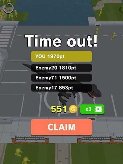 Перемещайте динозавра смахиванием, чтобы разрушить город.