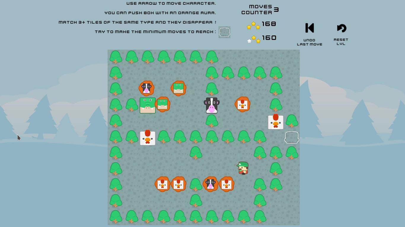 В этой игре, созданной за 48 часов для кенни-геймджема 2019 года, мы создали невероятное сочетание (тему) классического сокобана и игры Match3.