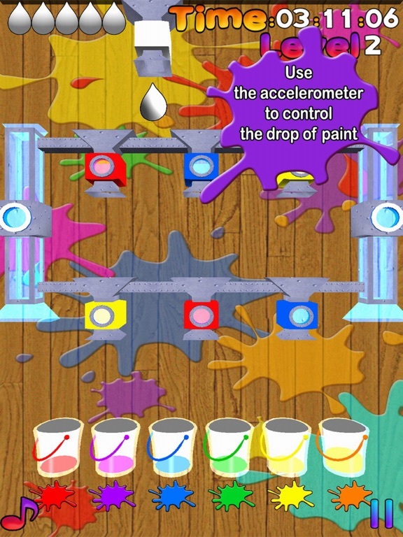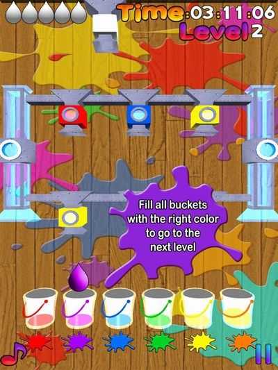 Управляйте каплей краски с помощью акселерометра, используйте цветные машины и составляйте правильные комбинации, чтобы заполнить ведра и перейти на следующий уровень.