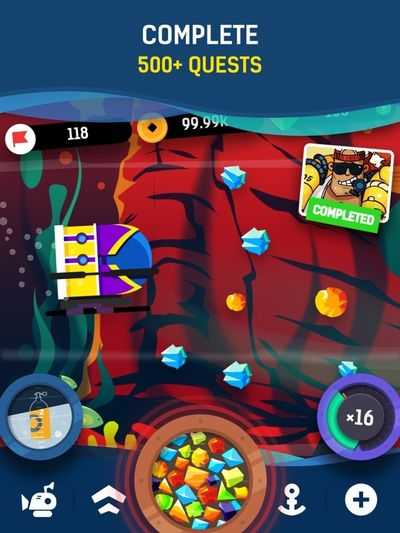 Idle Submarine — это приключенческая игра на холостом ходу. Начни командовать подводной лодкой, присоединись к международной кругосветной гонке и стань лучшим капитаном. Гонка не будет легкой прогулкой, соперники сильные, и чтобы стать первым, модернизируйте лодку на ходу: двигатель, производственную систему, реактивную секцию, грузовой отсек. Собирайте неизведанные ресурсы на дне, выполняйте задания мистера Дэйва Джонсона, исследуйте пещеры и спроектируйте свою уникальную подводную лодку. Запечатайте люк и вперед!