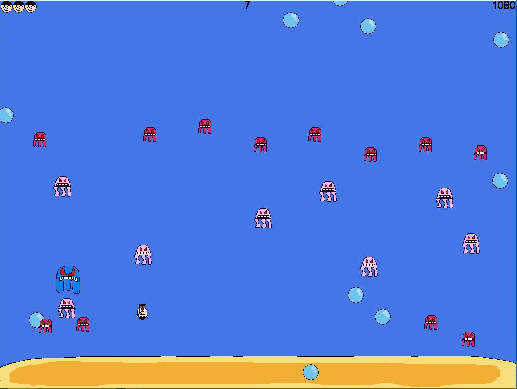 Под водой группа злых морских существ атакует в океане Короля кальмаров. Ваш игрок Seaboy должен победить этих злых морских существ, вы можете бить и пинать этих морских существ, как только вы победите достаточно Морские существа: появляется большой кальмар. Чтобы набрать очки, нужно лопнуть пузыри. В этой игре семь уровней. Когда вы пройдете все уровни, вы станете звездой игры, у вас будет три жизни, а когда вы наберете 5000 очков, вы заработаете жизнь, теперь сделайте океан мирным.
