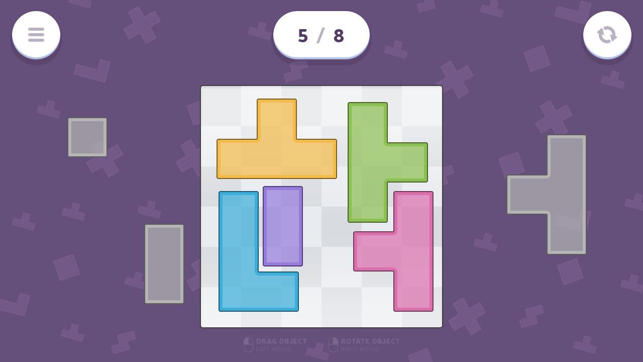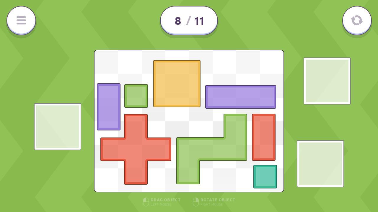Каждая игровая зона должна содержать все цветные блоки без каких-либо наложений или выкладывания за пределы коробки. Перетащите и поверните их, пока они не встанут на свои места, звучит просто, но; можно чесать в затылке.