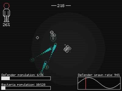 Развивайте свою бактериальную колонию, чтобы заразить и убить человека, внутри которого вы находитесь. Сражайтесь с растущим населением защитников, используя своих миньонов-бактерий. Сделайте так, чтобы ваше население превышало численность населения защитников, чтобы «уровень смертности» людей увеличивался. Доведите уровень смертности до 100 % до того, как истечет время.