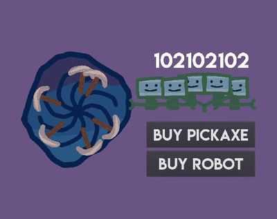 Эта игра представляет собой простой кликер. Вы можете приобрести кирку или робота.