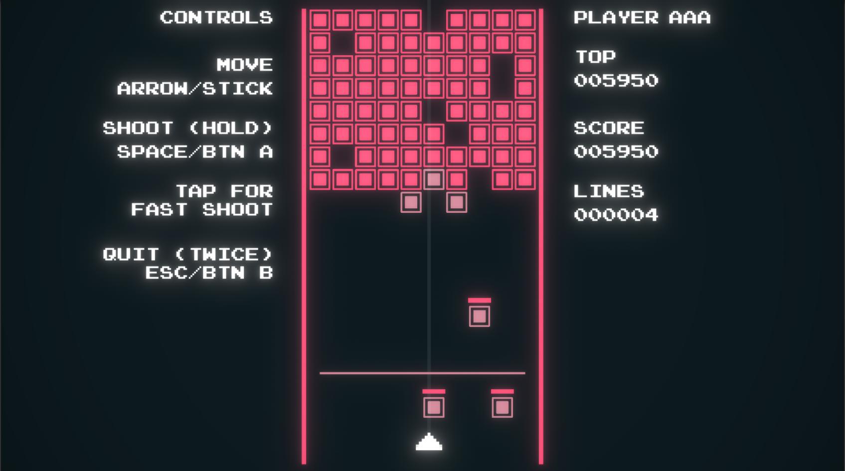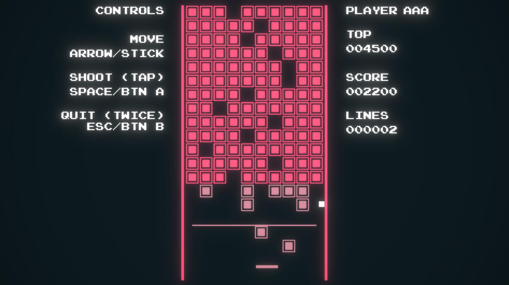 О: Посмотрев на аркадные игры 1980-х годов, мы решили объединить аркадные игры, такие как Tetris и Arkanoid, в одну игру. Эстетика и звуки игры также были разработаны, чтобы игроки чувствовали себя так, как будто они играют в аркадную игру из 1980-х годов.