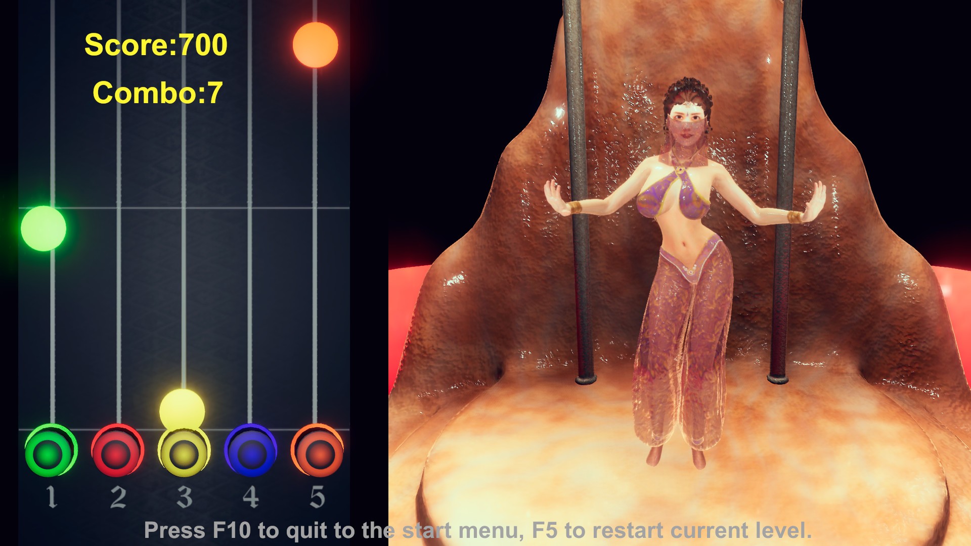 2 - У каждого танцора есть своя фоновая музыка, которая воспроизводит музыкальные ноты сверху вниз. Вы должны очень хорошо нажимать кнопки нот ниже, чтобы убедиться, что количество комбо-нажатий не меньше 100, а затем после того, как девушка закончив танцевать, ты можешь получить один билет.