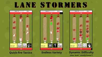 Lane Stormers — это карточная игра для одного игрока в реальном времени! Используя случайную колоду, содержащую множество юнитов, заклинаний и структур поддержки, вы сражаетесь с постоянно появляющимися полчищами монстров. Разыгрывая свои карты, разумно выбирайте между тремя линиями, прорвитесь к базе врага и уничтожьте ее!