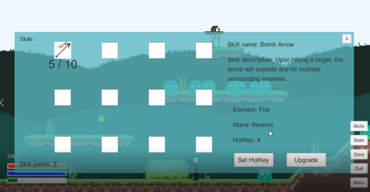 Убийство слаймов даст опыт и золото. Используйте золото, чтобы покупать различные навыки и становиться сильнее.