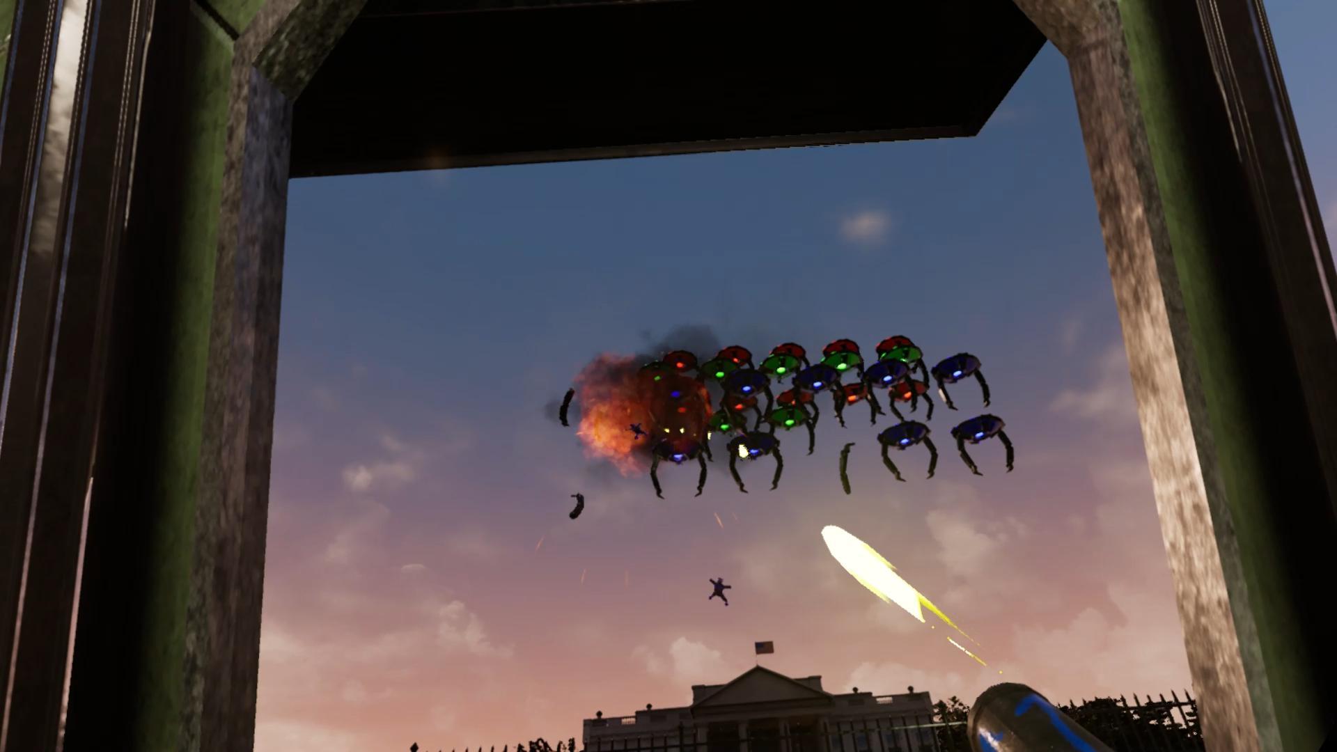 Используйте внутриигровые элементы управления в аркадном стиле и ручку/экран наведения пушки , чтобы достичь как можно большей волны и набрать как можно больше очков. При этом избегая входящих выстрелов и не позволяя силам вторжения достичь земли. Получите 10, 20 и 30 очков за синий, зеленый и красный корабли соответственно, а также 100 бонусных очков и дополнительную жизнь за уничтожение злого космического кота-гения Доктора Мяутагмуса.