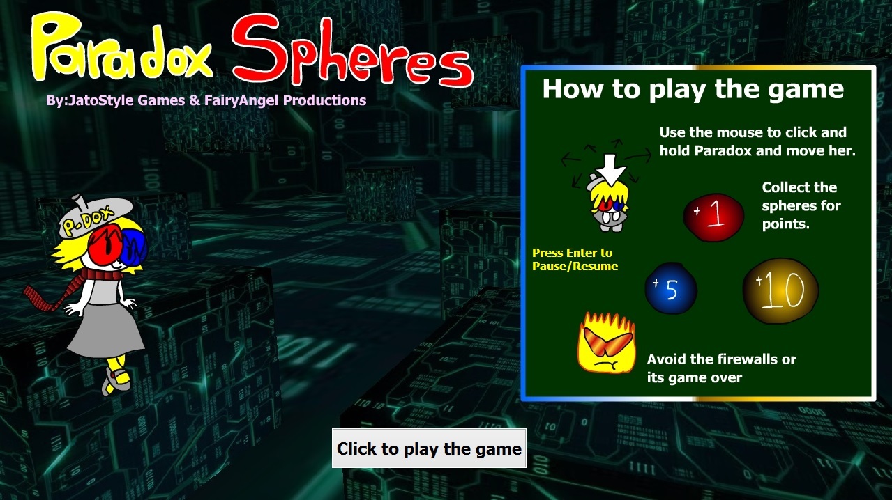 Это простая игра, в которой вы перемещаетесь вокруг маленькой кибер-эльфийки, которая собирает сферы, избегая огненных стен